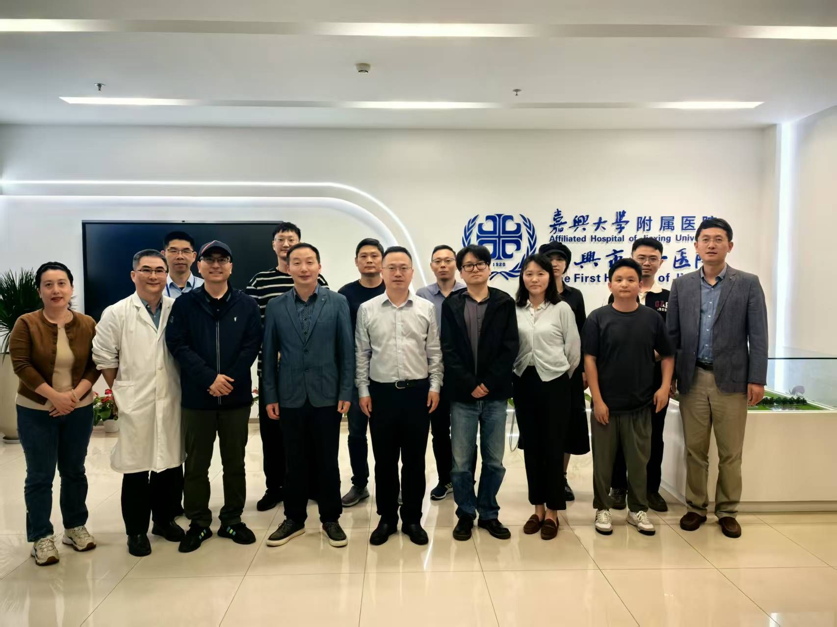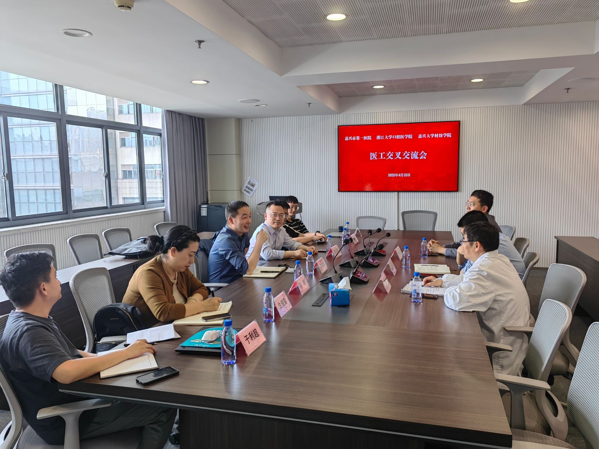 副院长(主持工作)沈加加教授团队、嘉兴市第一医院临床专家及浙大口腔医院陈学鹏教授团队,共同探索医工学科交叉的创新路径。
