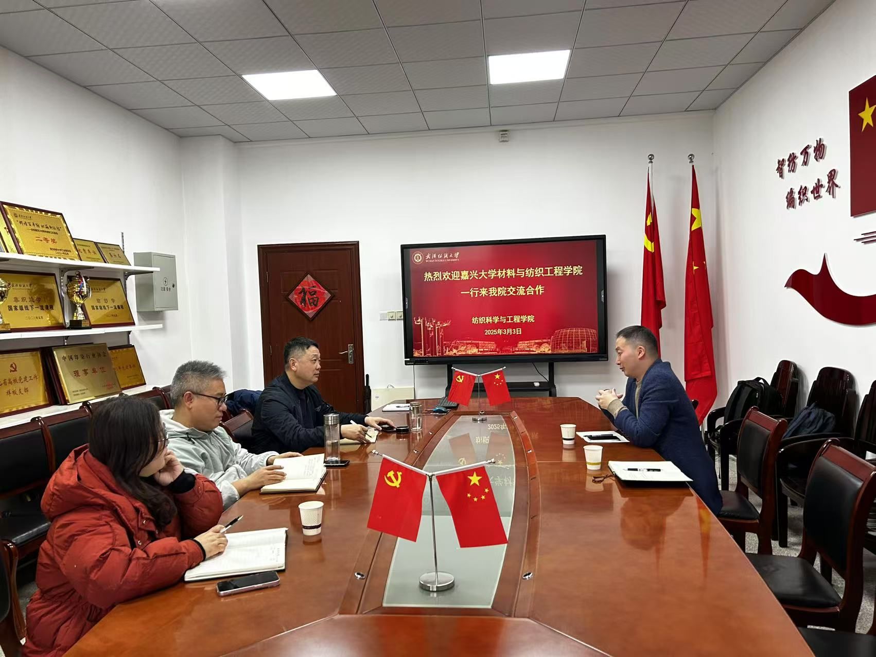 为学习借鉴高水平大学先进经验,推动每日大赛 高质量发展,3月3日,学院副院长(主持工作)沈加加一行赴武汉纺织大学开展调研交流活动。