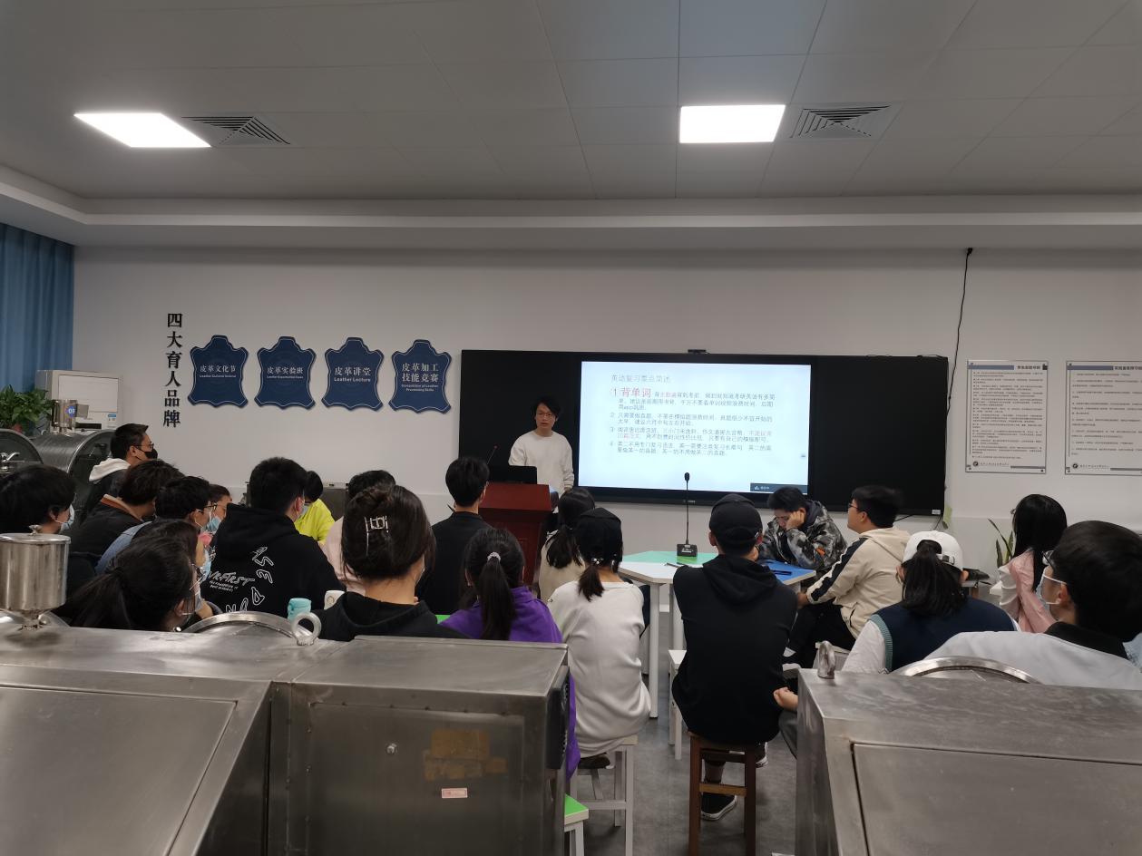 为了进一步提升我院轻化工程系学生对考研和对考研的热情,明确考研目标,掌握相关考研经验和技巧,我院轻化工程系于4月19日晚在轻化工程智慧实验室通过“线上+线下”方式举行了考研经验交流会。轻化工程系罗建勋老师、李书卿老师、王亚平老师、轻化(实验)181班和纺织系周聪、等成功考研学生、轻化(实验)191班和轻化(专升本)211班有意向考研的学生参加。交流会由轻化191班王伊同学主持。