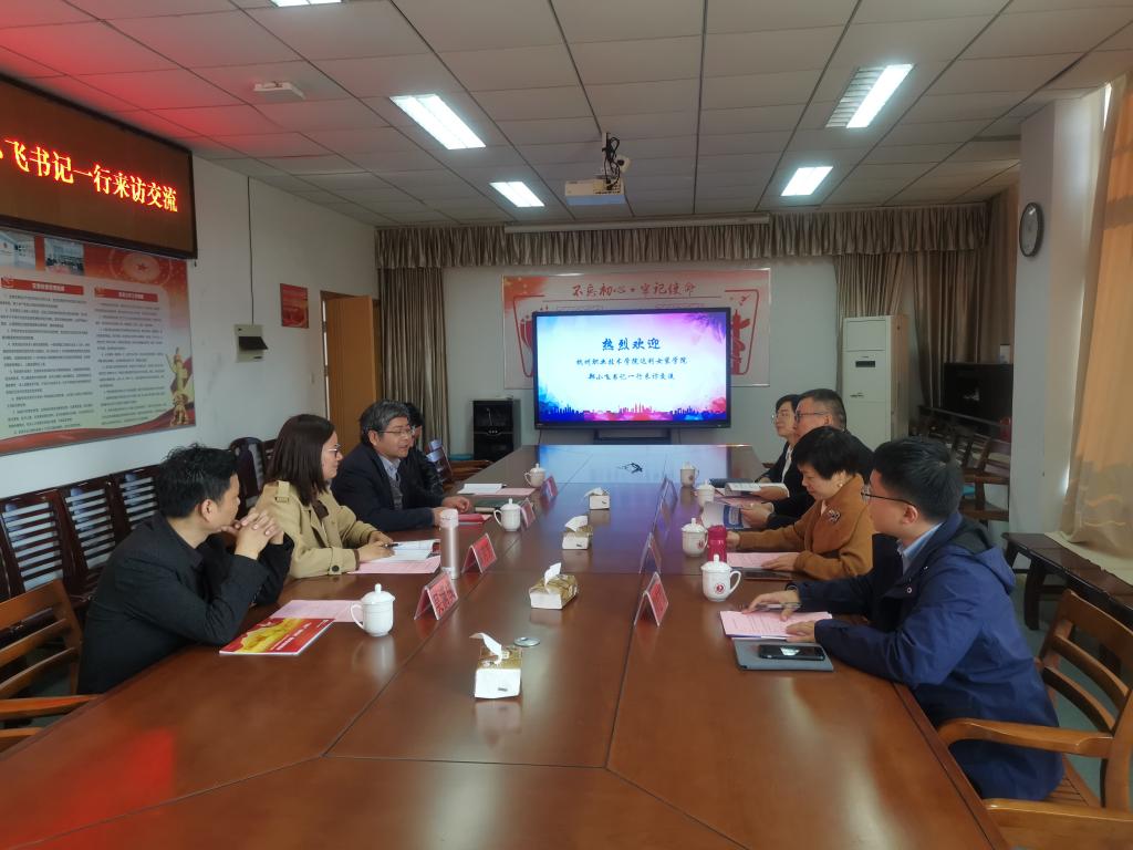 11月13日上午,杭州职业技术学院达利女装学院党总支书记郑小飞一行4人到我院考察交流。学院党委书记易洪雷、副书记黄芳芳、副院长代正伟和校学生处招生科科长吴满成参加座谈。