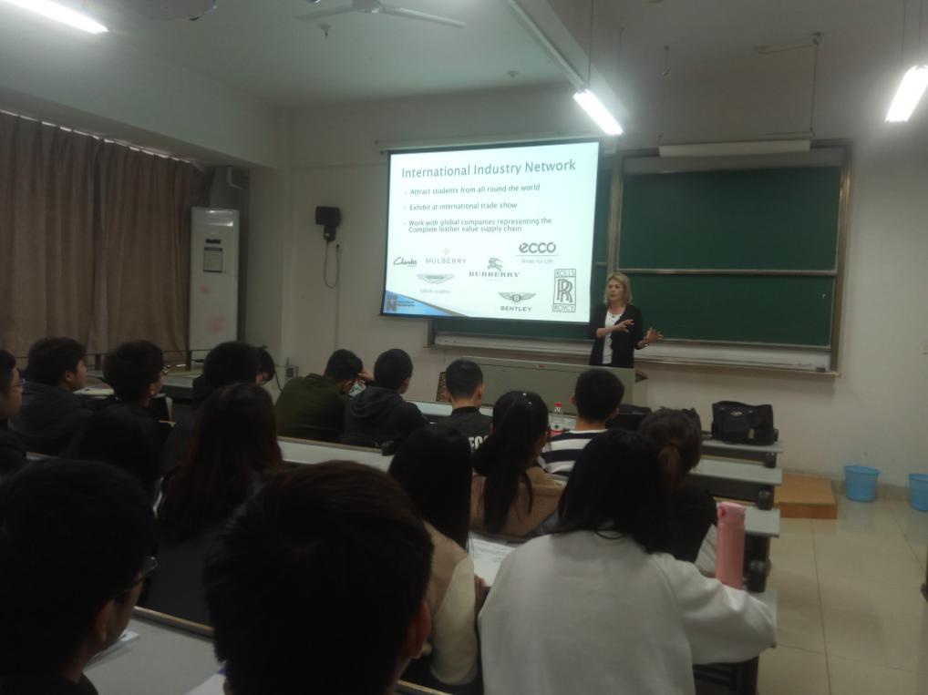 11月19日,英国北安普顿大学创意皮革技术学院(ICLT)Ms Rachel Garwood院长、德国TRUMPLER公司刘四华经理访问了我院。在访期间,Ms Garwood为轻化工程系师生做了题为《Leather Education-It’s ongoing role in sustaining a future for the global industry》的精彩报告,并与师生进行了互动交流。随后,客人们参观了轻化工程专业教学实验室,并与我院院长易洪雷教授、轻化工程系罗建勋主任及部分教师围绕国际化办学与合作方面进行了深入地沟通与交流。最后,Ms Garwood向我院赠送了其学院的代表著作《Tanning Chemistry》。