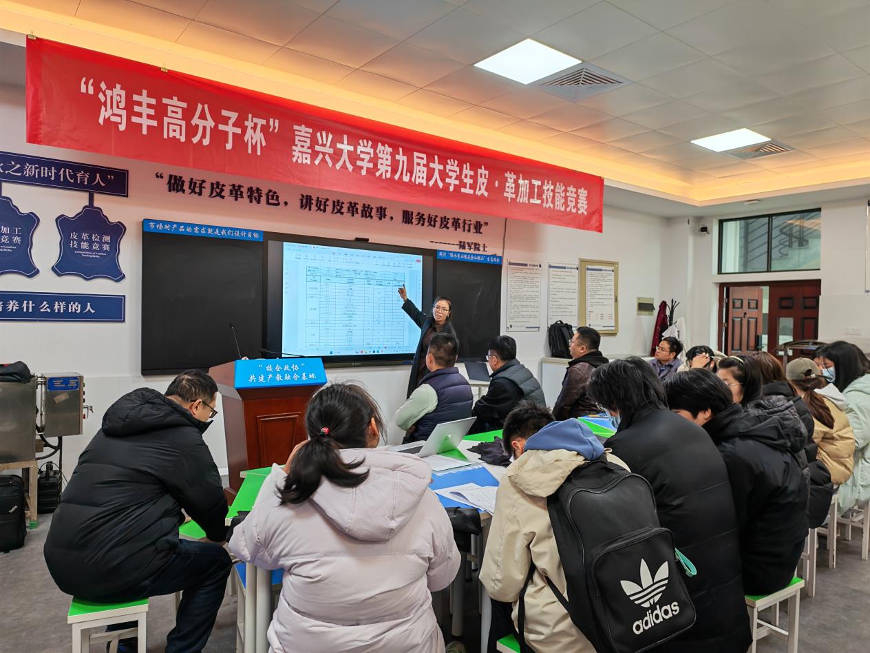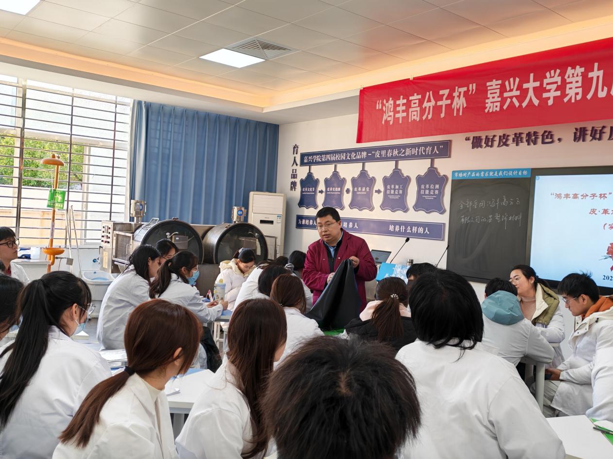 12月9~13日,“鸿丰高分子杯”每日大赛 第九届大学生皮•革加工技能竞赛在轻化工程智慧实验室举行。我院轻化工程专业负责人罗建勋教授及部分骨干教师参加指导,轻化231全体学生、轻化2024级部分学生参加了本次竞赛。