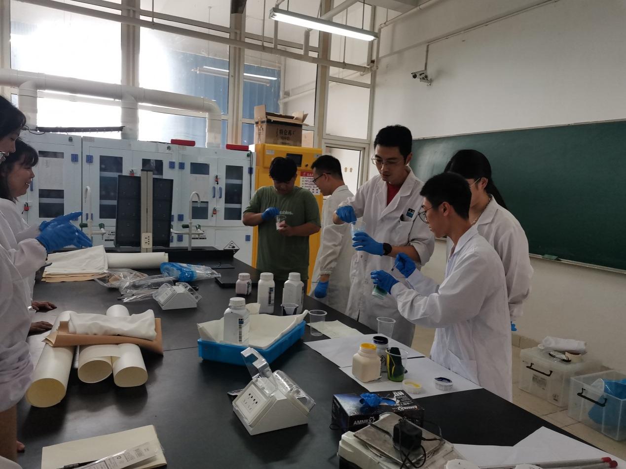 罗建勋老师致欢迎词并带领客人参观了我院轻化工程智慧实验室,介绍了我院轻化工程专业发展历程、现状及十四五发展规划。李克弯经理等就STAHL公司的发展历程、皮革涂饰、合成革制作技术等方面给师生们做了深入的讲解。随后,指导学生们进行合成革设计与制作实验,通过动手实操的切身体会,使每个学生充分学习与体会到合成革与天然皮革在制作工艺方面的异同。最后,进行实验成果展示和技术总结。