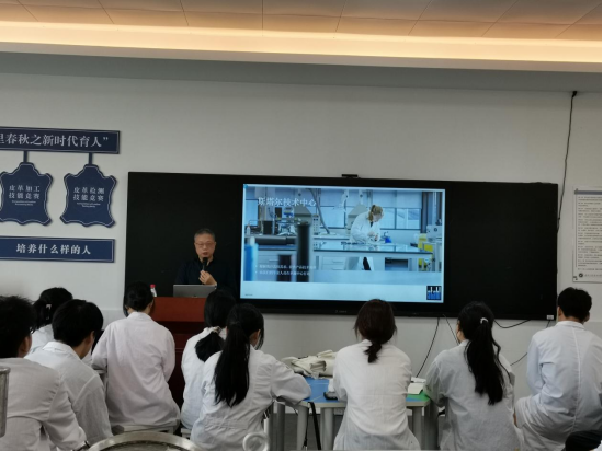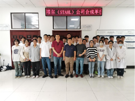 为了进一步丰富我院轻化工程系生态合成革模块建设的内涵并实现创新和高质量的、快速发展,我院轻化工程系特邀请作为“时尚皮革与合成革现代产业学院”共建单位之一的斯塔尔精细涂料(苏州)有限公司郭祥经理、夏敏经理、李建辉工程师、袁欣高工、骆如慧工程师一行5人来校共同指导轻化(专升本)221班学生的《时尚合成革的设计与制作》课程的讲授与建设,轻化工程系主任、课程负责人罗建勋教授全程陪同讲授。