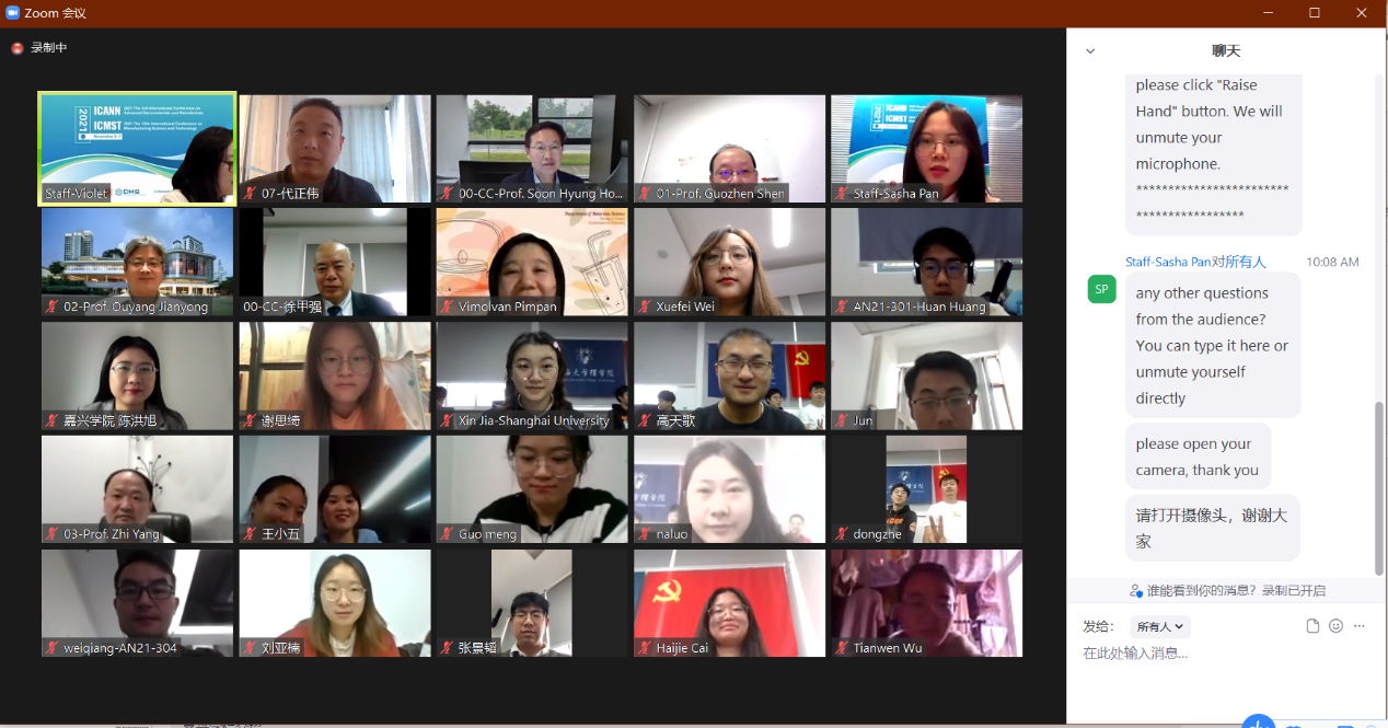 2021第三届先进纳米材料与纳米器件国际会议(ICANN2021)于11月5日~7日在线举行。此次会议是由嘉兴学院(纳米技术研究院)与上海大学联合主办。来自中国科学院、清华大学、新加坡国立大学、上海交通大学、盐城工学院等多家院所的纳米技术研究学者参与了会议。纳米技术研究院院长洪淳亨院士做大会致辞,嘉兴学院每日大赛 副院长代正伟做大会主题报告。纳米技术研究院李雷博士、陈洪旭博士、张弛博士分别就电化学和生化传感器、纳米材料与气体传感器、材料工程与制造技术方面的研究进行了口头报告。陈洪旭博士获得分会场最佳报告。