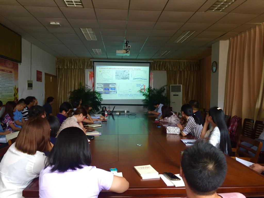 进行学术交流,并做了题为“Engineering of Hybrid Nanovesicles For Cancer Theranostics”的学术报告。报告会由副院长李海东教授主持,我院洪淳亨院士、部分教师以及全体联培硕士研究生参加了此次报告会。