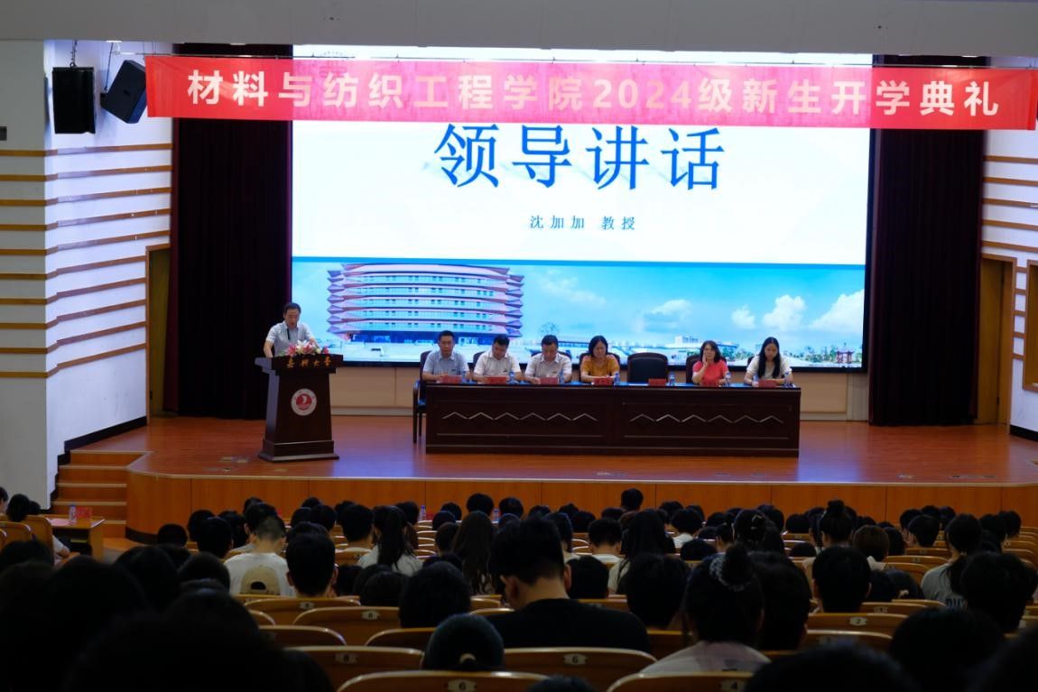 首先,纺织241班林雅琦作为2024级新生代表发言,她呼吁全体新生以“方正、勤慎”为舵,怀揣自豪与使命,奔跑奋斗,共绘嘉大新篇章。随后院领导、各教学系负责人为2024级新生班主任、班助颁发聘书。2016届高分子材料与工程专业优秀校友代表赵玄理回顾了自己的学习经历,感恩母校不仅教授专业知识,还给予自己面对挑战的勇气和底气,勉励同学们要大胆科学创新,勇于攻坚克难。教师代表洪新球对2024级新同学表示热烈欢迎,并结合自身经历和执教经验,寄语新同学们在大学阶段要严格要求自己,以实事求是为准则勇于探索。最后,沈加加副院长(主持工作)讲话,他勉励新生要勤学善思,励精图治,在比学赶超中力争先进;要志存高远,励志笃行在攻坚克难中再开新局。