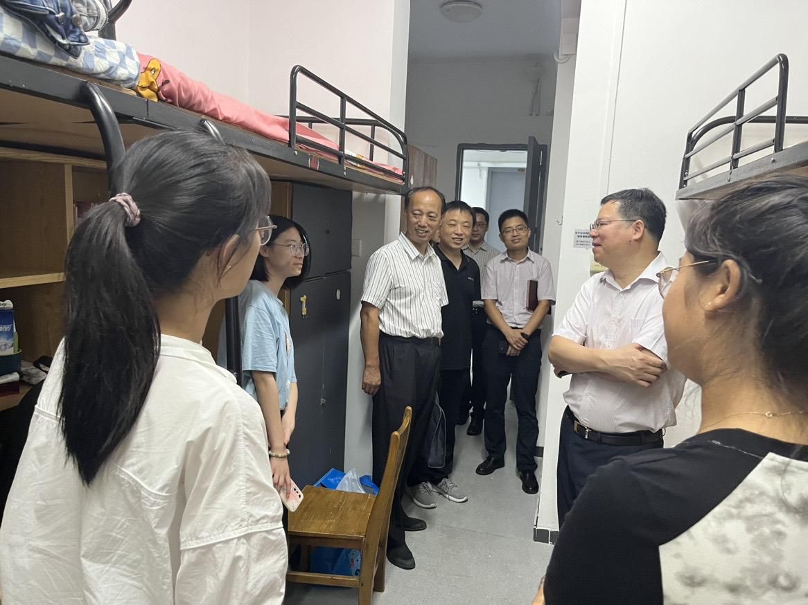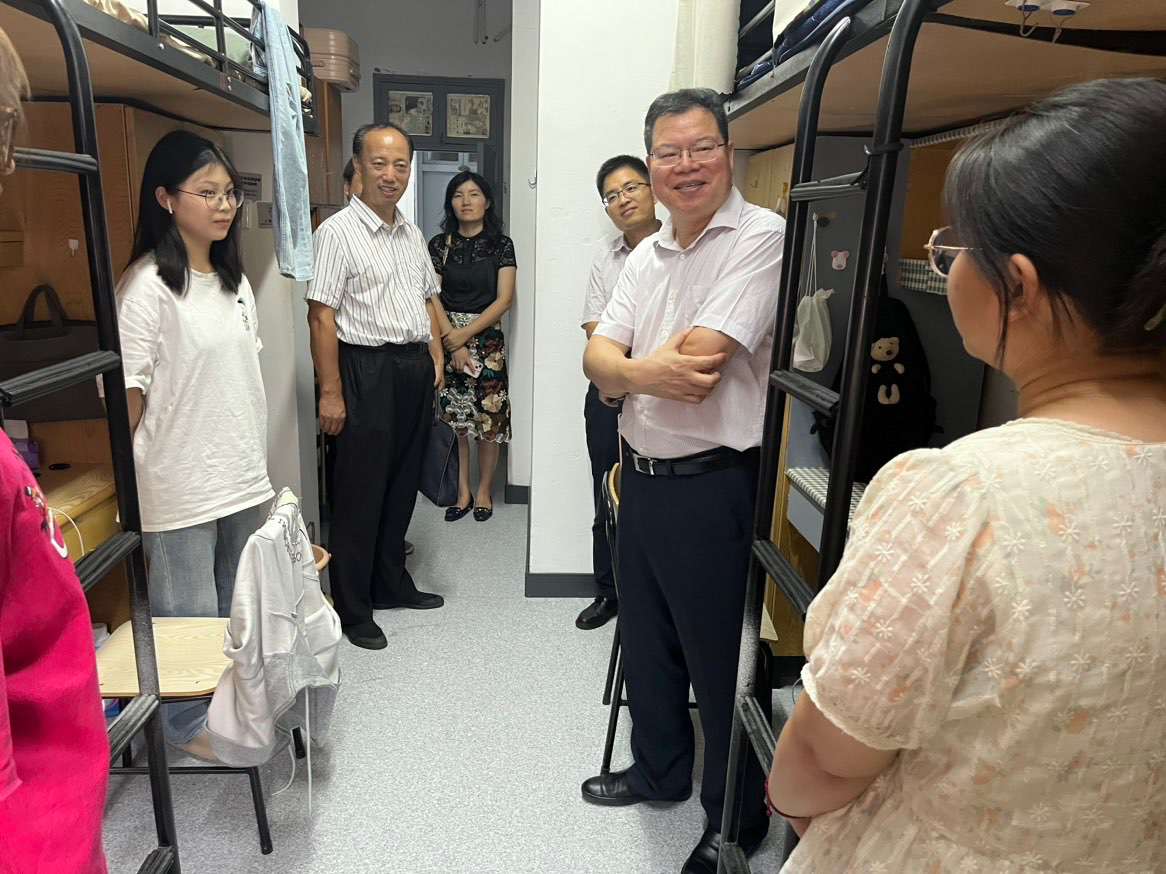 党委书记寸哲、副院长代正伟、党委副书记孙大宏、学工办辅导员的陪同下,深入学院新生寝室,实地了解新生的报到和生活情况,引导新生尽快适应新生活、新环境。
