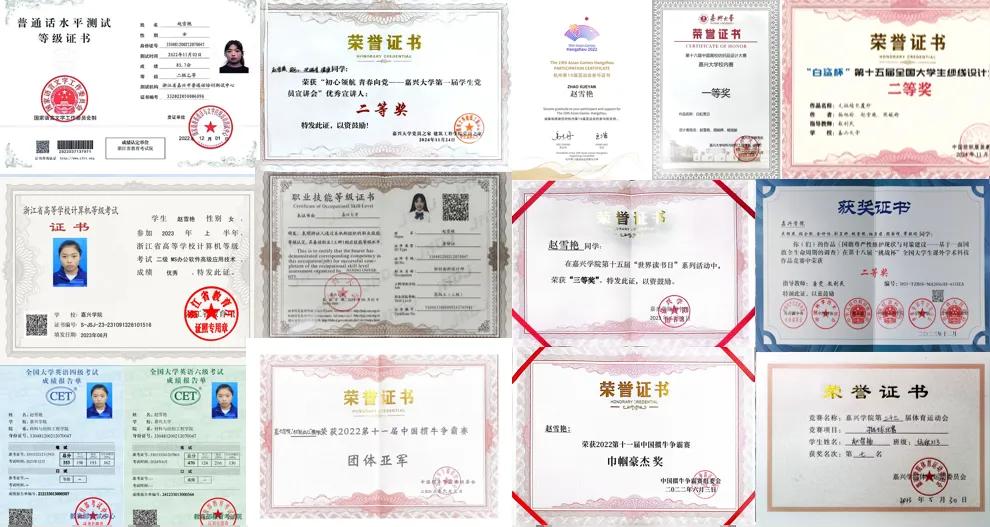 大学四年,赵雪艳在专业学习中孜孜不倦,不断夯实理论基础,系统构建专业知识体系。她综合排名专业第1,获得国家奖学金等国家级表彰4项、浙江省优秀毕业生等省级表彰4项、校级表彰20余项。