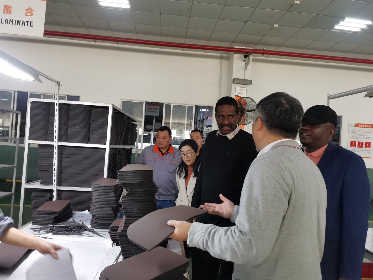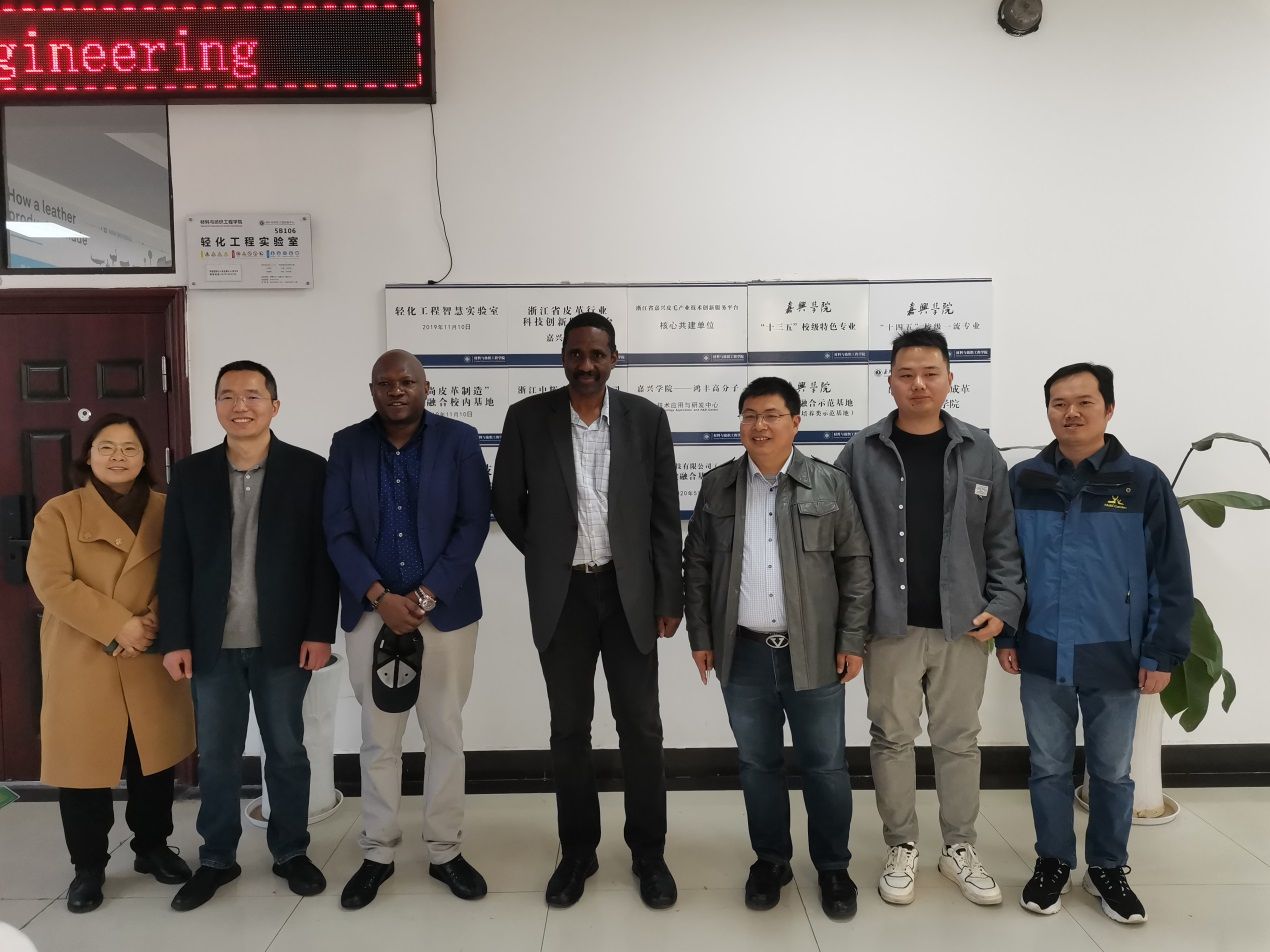 首先,Albert一行参观了轻化工程智慧实验室(产教融合校内基地),对实验室的设计、布局和功能等高度赞许。随后,赴我院产教融合校外基地之明新旭腾新材料股份有限公司、海宁中国皮革城、浙江富卡科技有限公司考察,初步了解了我国皮革产业的规模、发展态势及我院轻化工程专业所处的良好的产业环境。最后,双方分别就坦方师生的短期培训、留学生培养等为主要内容的国际化办学进行了深入的交流与讨论,并达成初步意向。