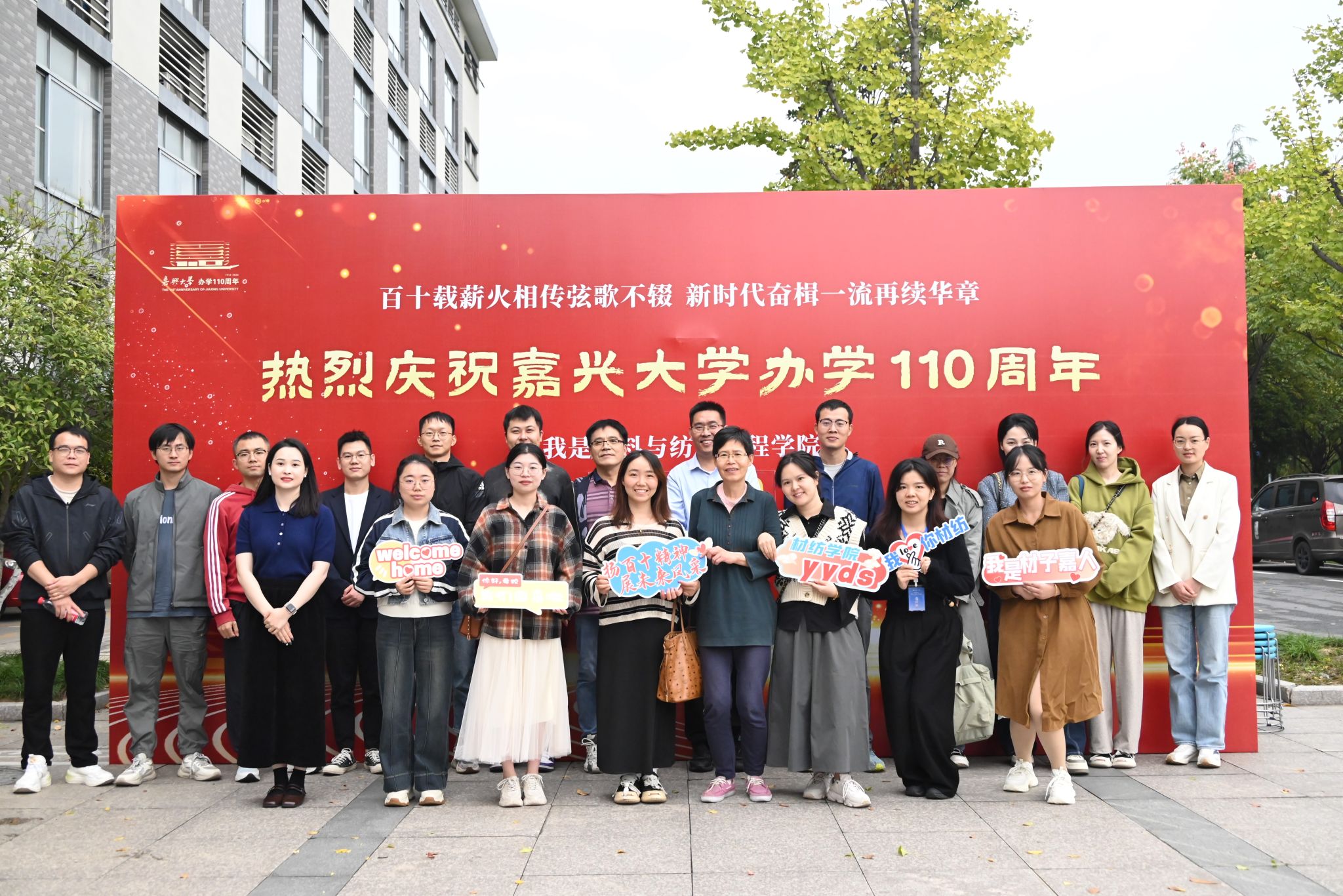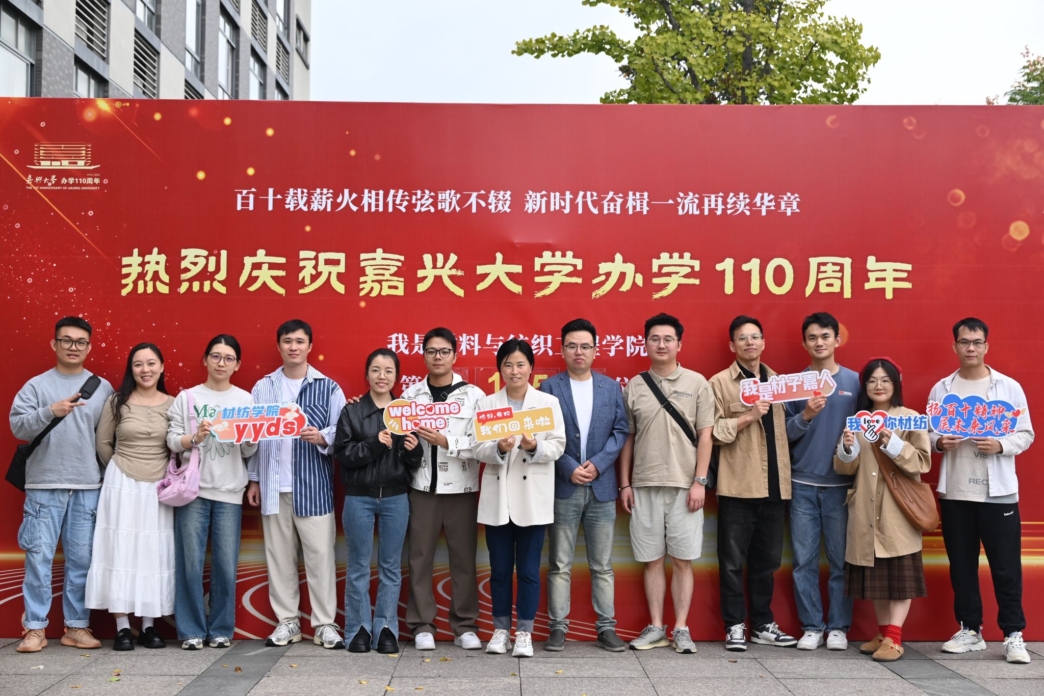 的校友们从四面八方赶来,他们胸前的校徽在阳光下熠熠生辉,表达着对母校的深深眷恋和祝福。在学院特置的喷绘墙前,校友们纷纷合影留念,回忆起那些青葱岁月,脸上洋溢着幸福的笑容。