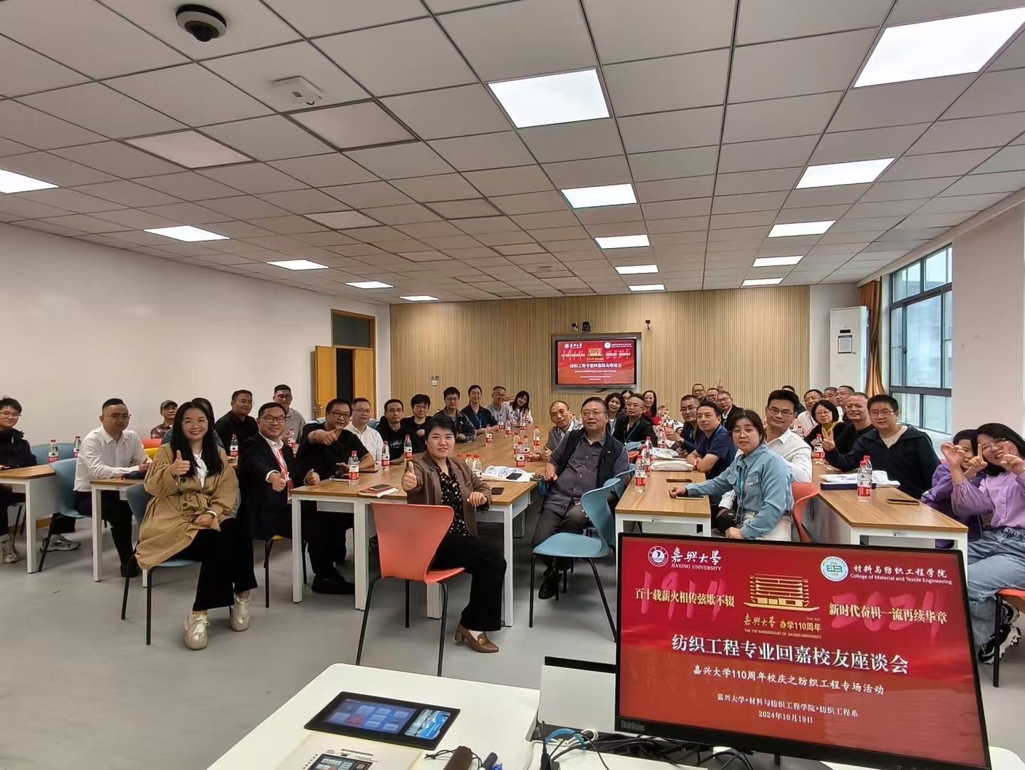 下午13:30,纺织工程专业回嘉校友座谈会在兴礼楼214召开,纺织工程系全体教师与校友欢聚一堂,共叙师生情谊,共谋专业发展。会上,校友们分享了各自在工作岗位上的奋斗历程和取得的成就,并对母校的培养表示衷心感谢。纺织工程系老师也向校友们介绍了近年来学院的发展变化和未来的发展规划,希望校友们能常回母校看看,为学院的发展贡献力量。
