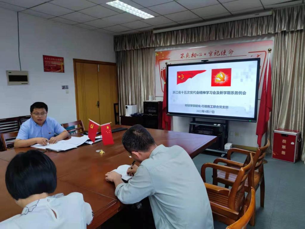 827日,我院轻化-行政联合教工党支部在崇礼楼419会议室举行浙江省十五次党代会精神学习会。支部全体党员参加会议,部分非党员教工列席会议。会议由党支部书记罗建勋主持。
