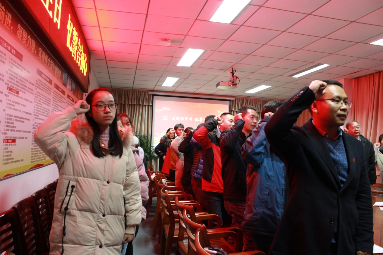 最后,全体党员面对庄严的党旗,重温入党誓词,在思想上再一次接受洗礼。