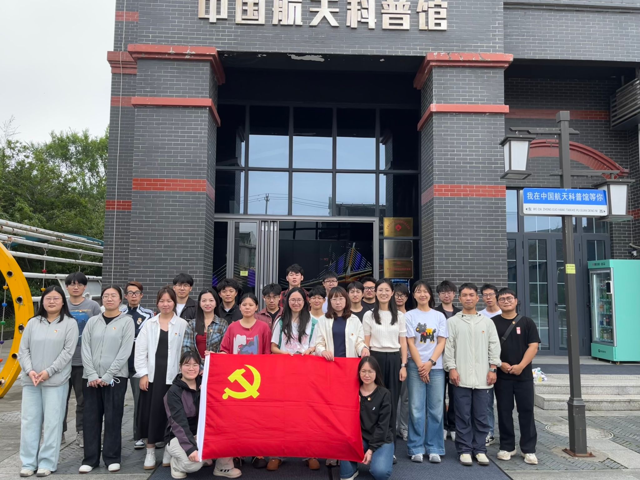 活动首站,研究生党支部前往平湖独山港镇的航天精神馆。在这里,长征系列火箭模型与天宫空间站交互系统构成的震撼视觉场域,让党员们仿佛置身于浩瀚的宇宙之中。大家驻足“两弹一星”元勋手稿展柜前,透过珍贵的历史资料,触摸到了老一辈科学家“干惊天动地事,做隐姓埋名人”的崇高精神。支部书记俞巧琦在现场讲授微党课,引导党员们领悟科技攻关与作风建设同频共振的深层逻辑,激励大家将科技报国的情怀融入日常科研工作中。