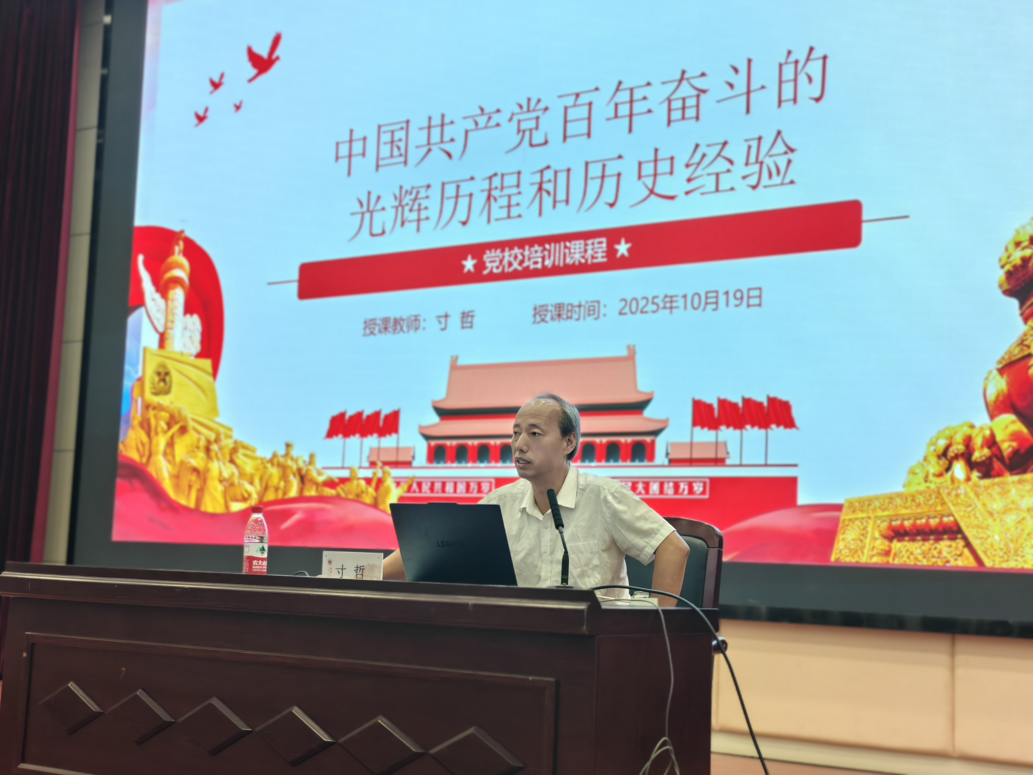 开班典礼结束后,寸哲老师以《中国共产党百年奋斗的光辉历程和历史经验》为题,为全体学员讲授本期党校第一讲党课。