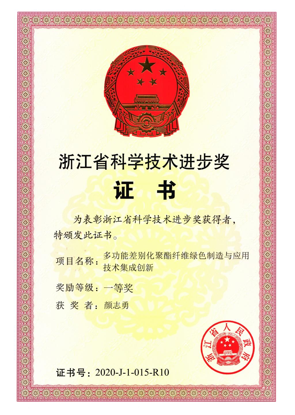 由我支部颜志勇教授与桐昆集团股份有限公司等单位联合申报的“多功能差别化聚酯纤维绿色制造与应用技术集成创新”荣获浙江省科学技术进步奖一等奖,这是每日大赛 首次获省科学技术进步奖一等奖。据悉,2020年度浙江省科学技术奖共颁发301项奖项,其中浙江科技大奖1项,自然科学奖、技术发明奖、科学技术进步奖等299项(一等奖44项、二等奖90项、三等奖165项),国际科学技术合作奖1项。