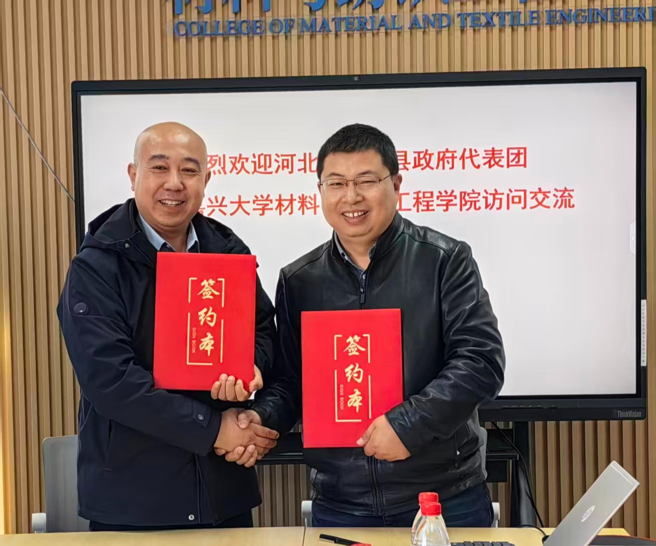 黄芳芳代表学院对无极县代表团的到来表示热烈欢迎并介绍了学校办学特色和学院在学科建设、师资队伍和科研平台方面取得的阶段性成果。她指出,学院轻化工程专业在绿色皮革制造技术等领域形成了鲜明特色,期待与作为北方皮革产业重镇的无极县开展深度合作,实现优势互补。罗建勋详细介绍了轻化工程专业的发展历程与特色建设成效。刘全江会长介绍了无极县皮革产业的发展现状、优势特色以及在绿色转型、技术升级和人才引进等方面的迫切需求。双方围绕行业资源对接、人才培养、社会合作等议题进行了深入交流,并就共同关注的技术难题、人才培养模式创新及产教融合基地建设等达成共识。随后,富创皮革、富创化工公司总经理刘立江与学院轻化工程专业负责人罗建勋共同签署了合作框架协议。