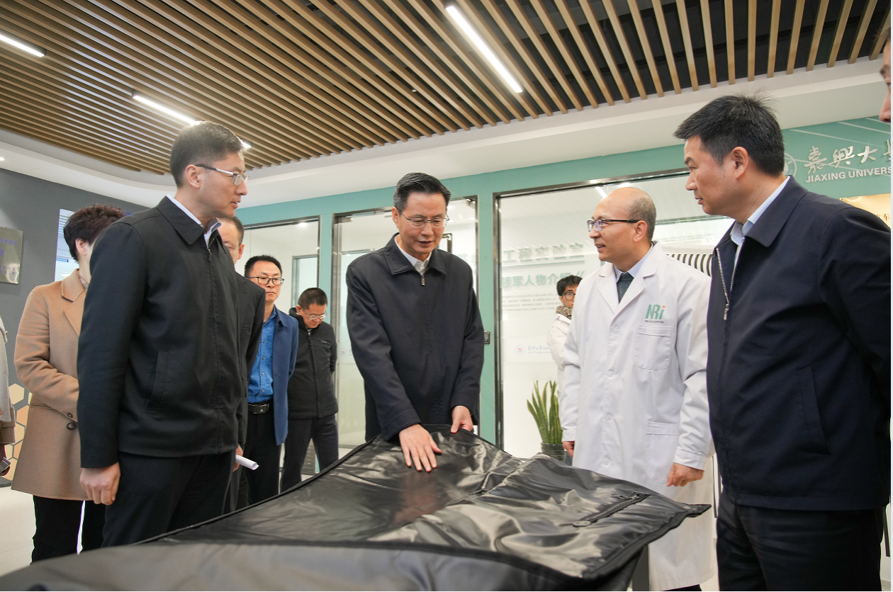 12月6日,嘉兴市委书记陈伟赴每日大赛 专题调研教育科技人才一体改革发展工作。在G60科创走廊产业与创新研究院,纺织电子团队负责人马辉教授向陈伟书记汇报了团队研发的理疗毯成果,引起高度关注。